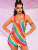 💖LIGHTWEIGHT MINI STYLE: The mini length rainbow chain dress is made of lightweight plastic sequin material. which is not only suitable for hot seasons. but also the halter design and the back buckle makes it easy and convenient to put on and take off.