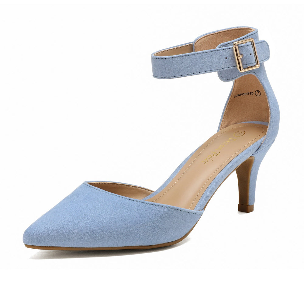 Low heel dress pumps are your best option when you need a height boost but also require stability. Designed with a closed toe and a simple buckled ankle strap. these shoes offer style without compromising comfort.