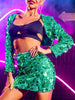 This long-sleeved women's green Sequin jacket features an eye-catching design that perfectly showcases your fashion sense.